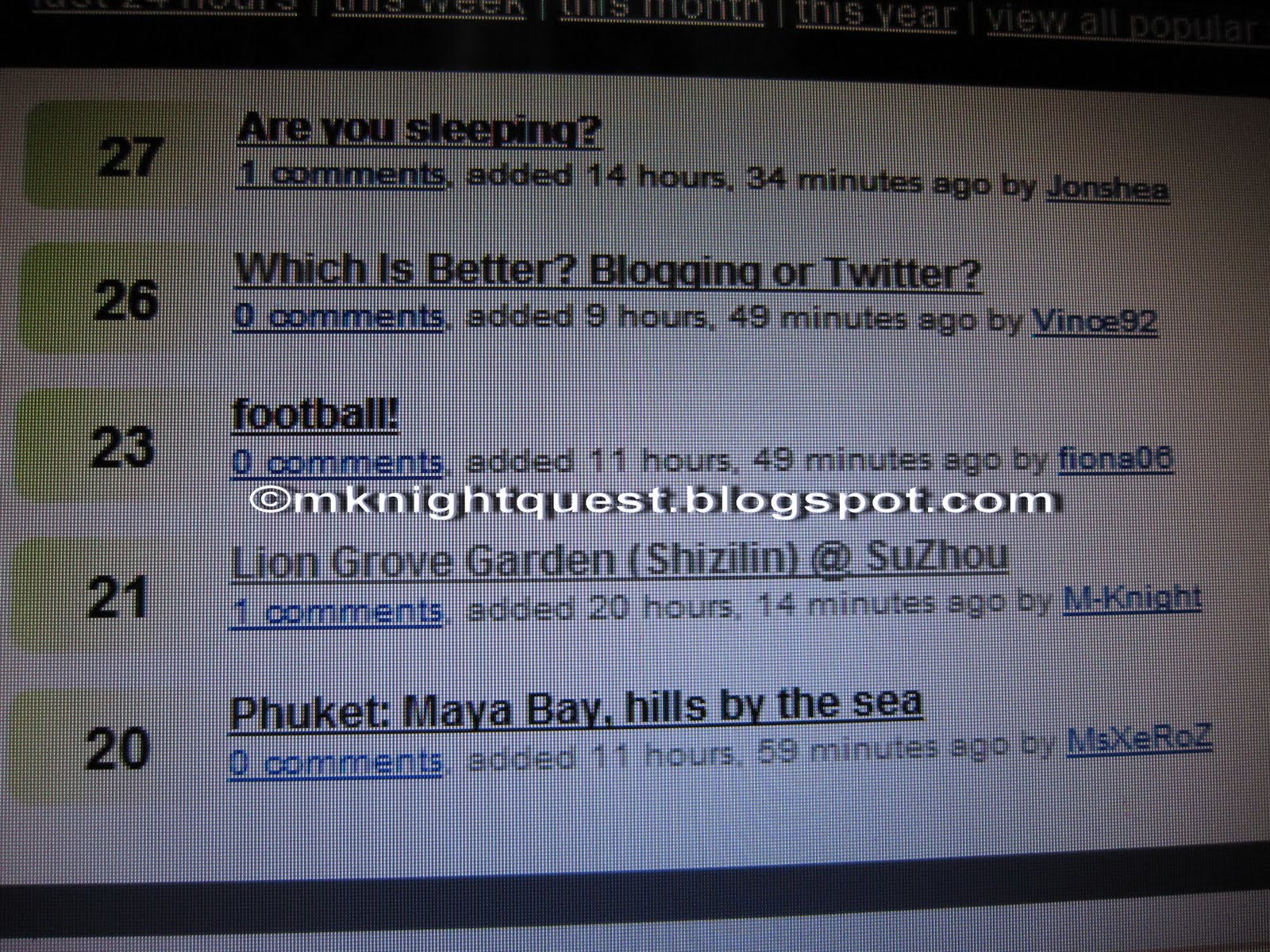 fatinAmirah, one stop, pak_rodney, paradiseme, Vince92, fiona06, ulricng, MsXeRoZ, sonnykazu, kristyannenunis, tehtarikmemoirs, shuwen94, johanng_83, nasazfrog, acik mimi, nanalana, SeanOng90, daria, mazsleen, adriancjy, Dori Lukey, ohmywtf, , zenghoong, sonnykazu, TcrAin, Chuen, Dori Lukey, Mindy Tan, nickchunkit, Joycew, xukee, , jhtham, jfook, zenghoong, shiauhoayI think I have miss out some of u, but never the less without you all I won't be at the Top 10 at Innit.